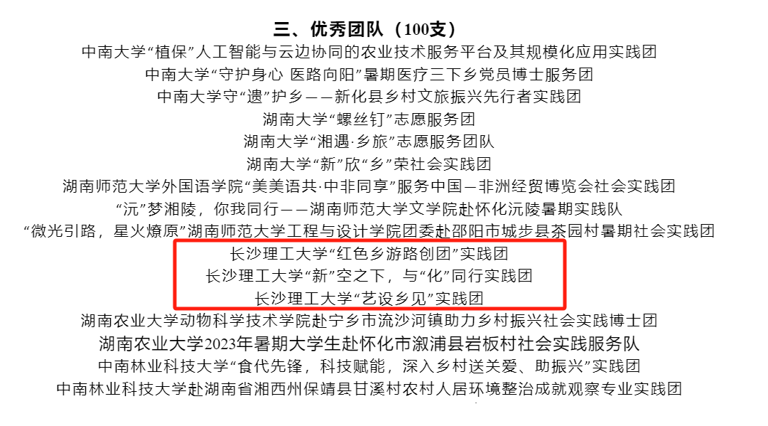 2023年必赢官网团委全面贯彻习近平新时代中国特色社会主义思想,深入学习宣传贯彻党的二十大精神,积极探索实践育人新模式,拓宽育人维度,呈现出新特色,大力开展暑期“三下乡”社会实践活动,在“行走的大思政课”中铸魂育人,引导和帮助广大青年学生在社会课堂中“受教育、长才干、作贡献”。必赢官网2796名学生、242名老师组织了204支队伍奔赴28个省及地区开展暑期社会实践活动,其中国家级团队14支,省级重点团队15支,校级立项团队51支。活动过程被人民日报、新华社、光明网、学习强国、中国教育报、中国青年网等国家级媒体宣传报道70余篇,湖南日报、潇湘晨报、湖南教育新闻网、新湖南、红网等省级媒体宣传报道180余篇,总浏览量超600万,取得良好的实践育人效果,充分发挥了共青团在思想引领和实践育人方面的优势。