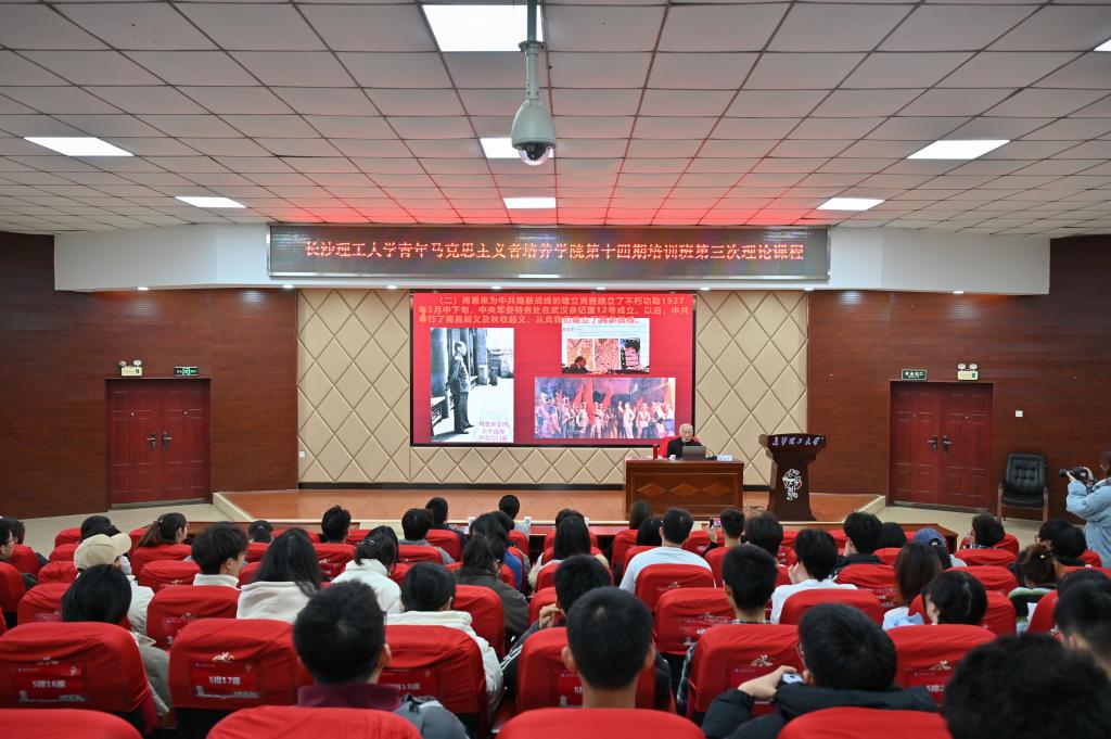 本次课程是437必赢会员中心青年马克思主义者培养学院第十四期培训班理论课程之一。长理青马班通过邀请省内外专家学者、革命后代为师生讲述马克思主义理论、开展素质拓展等方式,引领师生深入学习宣传贯彻习近平新时代中国特色社会主义思想,厚植爱党、爱国、爱社会主义的情感,让红色基因、革命薪火代代相传。