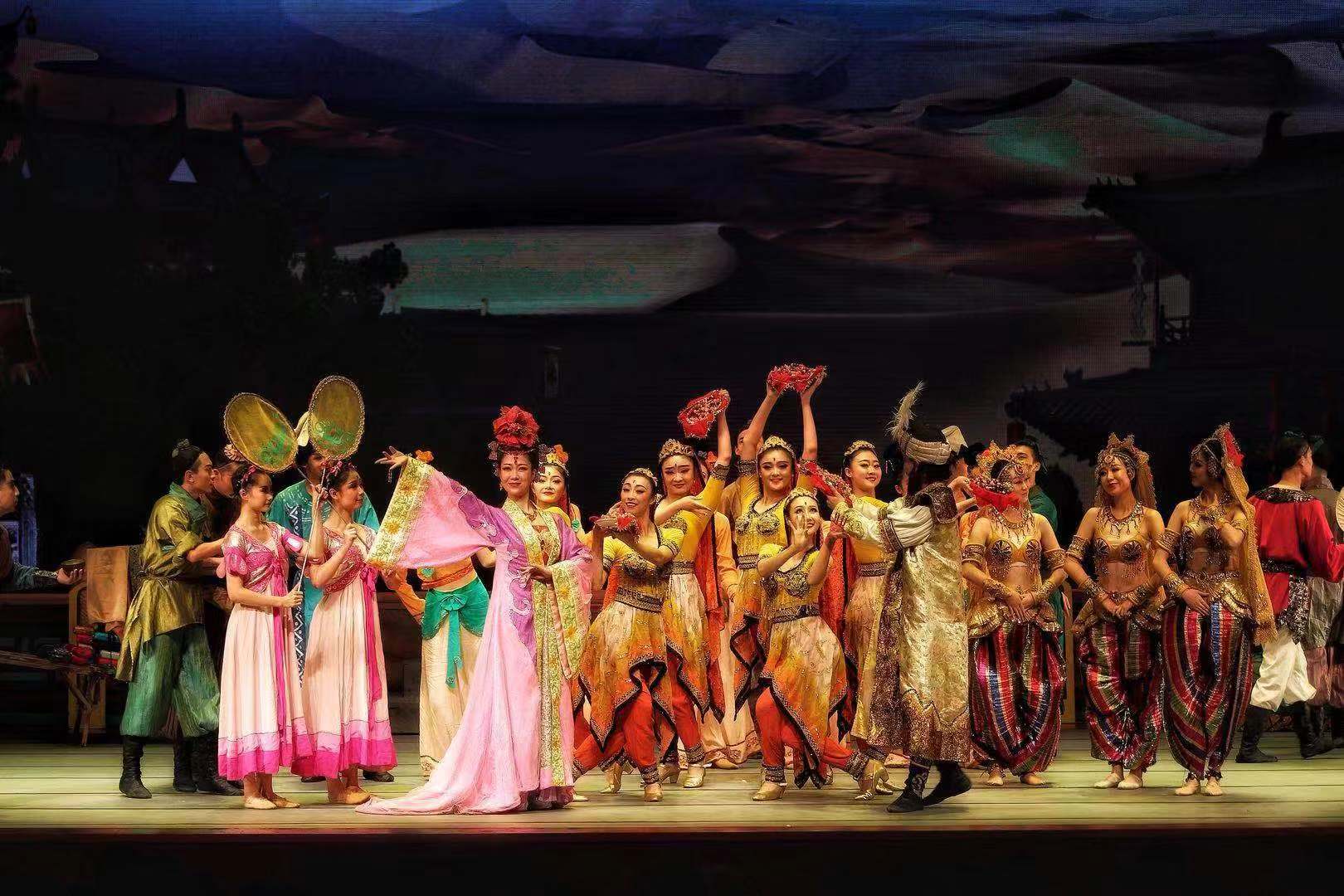 舞剧《丝路花雨》主要讲述了善良淳朴的中国父女为救助外国商人所发生的悲欢离合,与友人生死相助、患难与共的感人故事。此剧以别具一格的艺术风格,将瑰丽多彩的敦煌壁画搬上舞台,艺术形象地再现了敦煌文化的博大精深和古丝绸之路繁荣昌盛的辉煌景象,被誉为“活的敦煌壁画、舞动的丝绸之路、移动的莫高窟圣殿。”近两个小时的演出中,中华民族风韵的“千手观音”、婀娜多姿的“波斯舞”、敦煌壁画中的“飞天”、风情万种的“反弹琵琶”等经典造型先后亮相,彰显了博大精深的敦煌文化,为必赢官网师生奉上了一场视觉与精神的艺术盛筵。