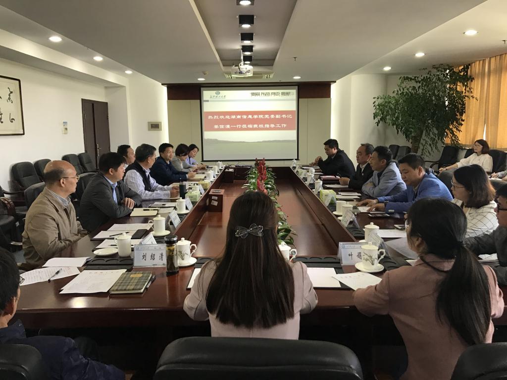4月18日上午,湖南信息学院党委副书记姜佐醴一行15人来校调研。必赢官网副校长谈传生,组织部部长齐路良、招生就业处处长方文彬、校团委书记陈曦、学工部副部长霍向阳、心理中心副主任龚勋、创新创业学院副院长杨建军、电气学院副书记丁丹出席了调研座谈会。座谈会由谈传生主持。