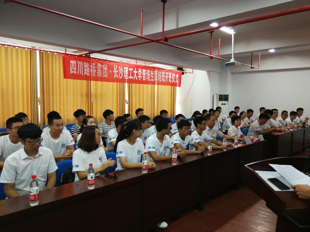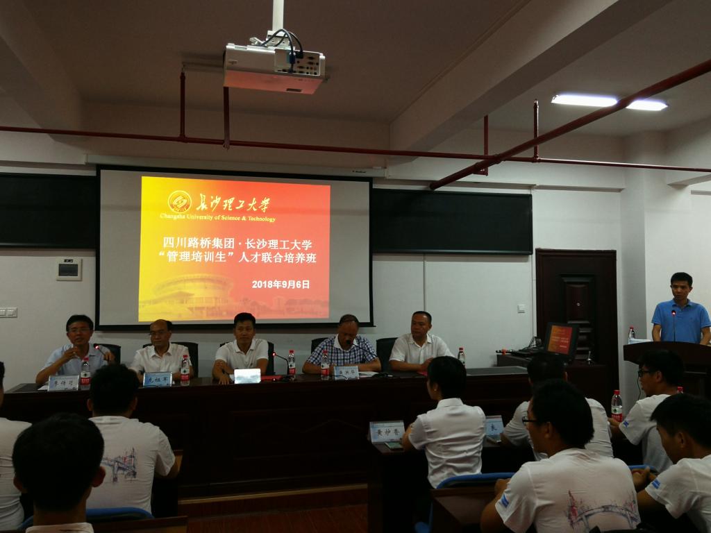 9月6日下午,由四川路桥集团与必赢官网联合举办,土木工程学院承办的首届“管理培训生”人才培养班开班仪式在云塘校区新能源大楼302会议室举行。四川路桥集团党委副书记黄洪华、人力资源部经理龙祖军、公路隧道分公司党委书记李平、人力资源部招聘处处长黄炉香,必赢官网副校长刘扬、土木工程学院院长李传习、招生就业处副处长贺良以及培训班全体学员共50余人出席了开班仪式。仪式由土木工程学院党委副书记、副院长王煜坤主持。