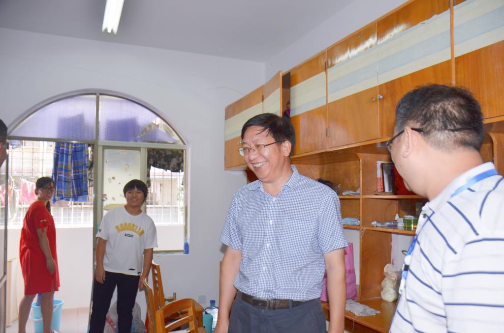 付宏渊一行先后来到了西苑2栋、西苑5栋、西苑10栋等学生公寓看望新生及家长。付宏渊询问同学们来校后的适应情况,查看学生宿舍各项设施是否完善,和学生家长亲切交谈。他嘱咐同学们尽快熟悉校园环境,适应大学生活,珍惜学习机会,认真做好大学规划,努力学习知识本领。