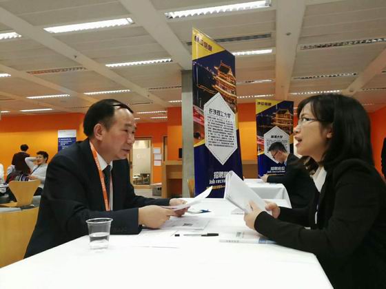 9月15日、16日下午,德国法兰克福专场招聘洽谈会和英国伦敦专场招聘洽谈会分别在法兰克福证券交易所和英国帝国理工大学举行。招聘会期间,黄立宏介绍了学校的基本情况、办学优势和引才政策,与应聘人员进行了深入沟通,数十位海外博士表达了来校工作的意向。9月15日,黄立宏在法兰克福专场招聘洽谈会期间,与德国欧福大学研究生学科主任朱开富进行了会谈,初步达成了合作办学意向。9月17日,黄立宏一行访问了英国剑桥大学;9月18日,拜访了英国沃特福德市市长。期间,黄立宏与英国剑桥大学教育学院院长Richard hickman、英国沃特福德市市长Rabindranath Martins就人才培养、国际交流、合作办学等事宜进行了会谈。访欧期间,黄立宏还拜访了中国德国商会、英中人才发展协会、英国侨商会,就必赢官网拓展海外引才渠道进行了多场座谈。