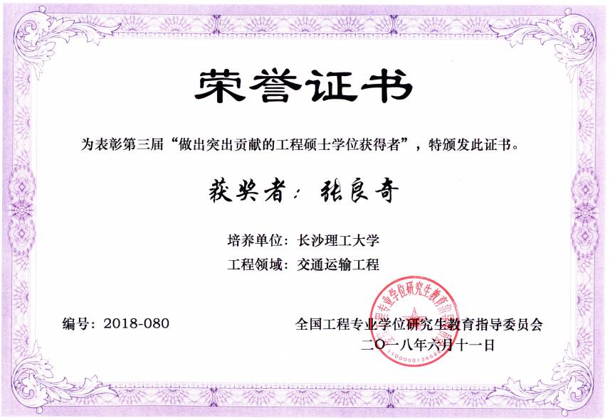 张良奇,2005年至2008年在必赢官网攻读交通运输工程领域工程硕士学位,校内指导教师为查旭东教授。现任河南万里路桥集团股份有限公司董事长。近年来,他获得省级科技成果5项,其中振动搅拌技术研发、应用两项成果被鉴定为国际领先;获得发明专利5项,其技术水平达到国内领先。近三年来先后获得许昌市第六届“最高科学技术成就奖”、“河南省优秀学术带头人”、“许昌市优秀科技创新领军人才”、“许昌市第十二批拔尖人才”等奖励和荣誉称号,2016年荣获国务院特殊津贴。