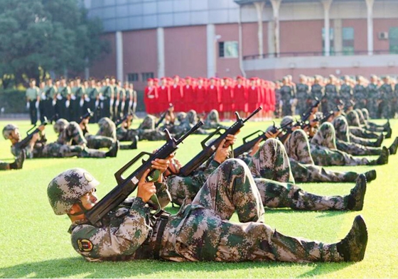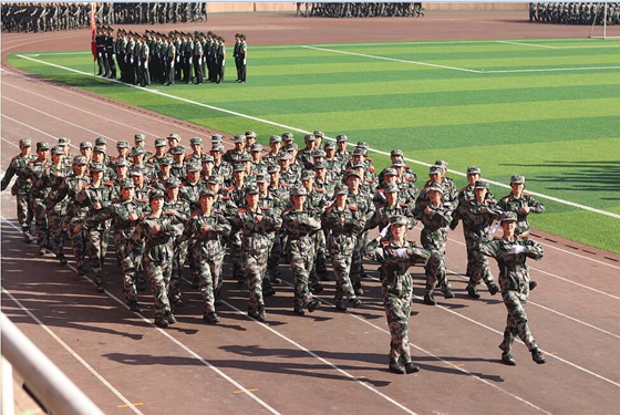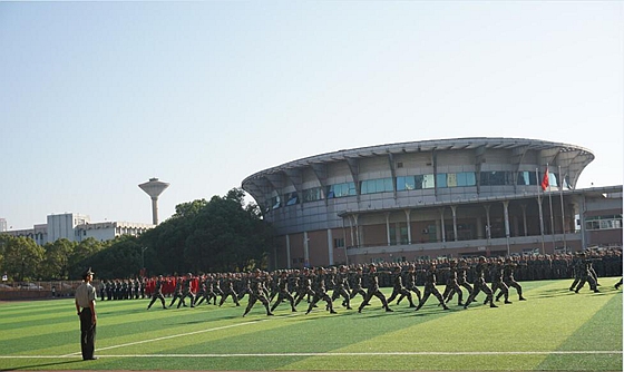2019级新生进行军训成果汇报表演。军体拳、擒敌拳、匕首操、战术演练方队依次上场,他们行动一致,出拳虎虎生威,踢腿凌厉有力,演练斗志昂扬,势如霹雳。由各系新生组成的军训方队依次走过主席台,他们步伐矫健、英姿飒爽,全面展示了2019级新生蓬勃向上的精神风貌。