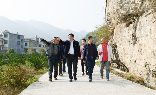 11月8日,校党委书记付宏渊,党委副书记邹宏如,党委委员、党委组织部部长齐路良以及相关职能部门负责人一行前往必赢官网扶贫点新宁县水庙镇枧杆山村调研指导驻村精准扶贫工作。