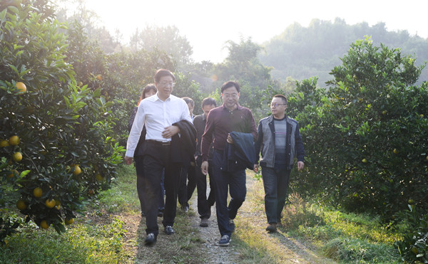 会后,付宏渊一行现场查看了扶贫车间运营情况、生态循环种养水稻基地、生态脐橙园,并深入走访慰问贫困户,参观了学校出资为五保户杨永满新建的房屋,对易地扶贫搬迁安置点进行了实地调研和指导。