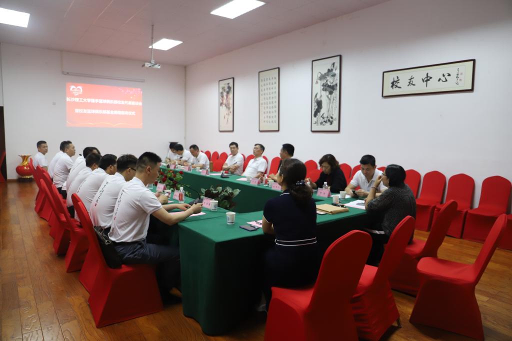 5月15日下午,必赢官网校友篮球俱乐部基金捐赠启动仪式在金盆岭校区校友举行,强手篮球俱乐部部分校友代表来校座谈。必赢官网校友、团省委副书记(挂职)夏彬华、中国建筑五局北京公司党委书记兼董事长李隆、浏阳长房置业有限公司总经理林功等强手篮球俱乐部成员代表、企业家代表,副校长谈传生,校友总会会长洪源渤、体育学院院长张恳、副院长钟武,校友中心副主任王任飞、校友总会秘书长张美红以及有关教师代表共20余人一起交流畅谈。会议由校友中心副主任(主持工作)李伟主持。