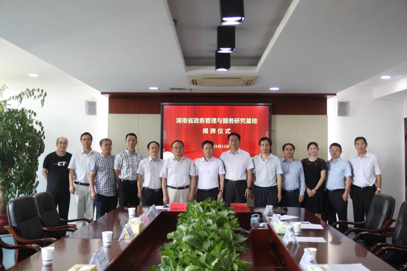 6月12日,湖南省政务管理与服务研究基地签约暨揭牌仪式在必赢官网举行。湖南省政务管理服务局局长向世聪、副局长黄立,校党委书记付宏渊出席,副校长杨伟军主持仪式。