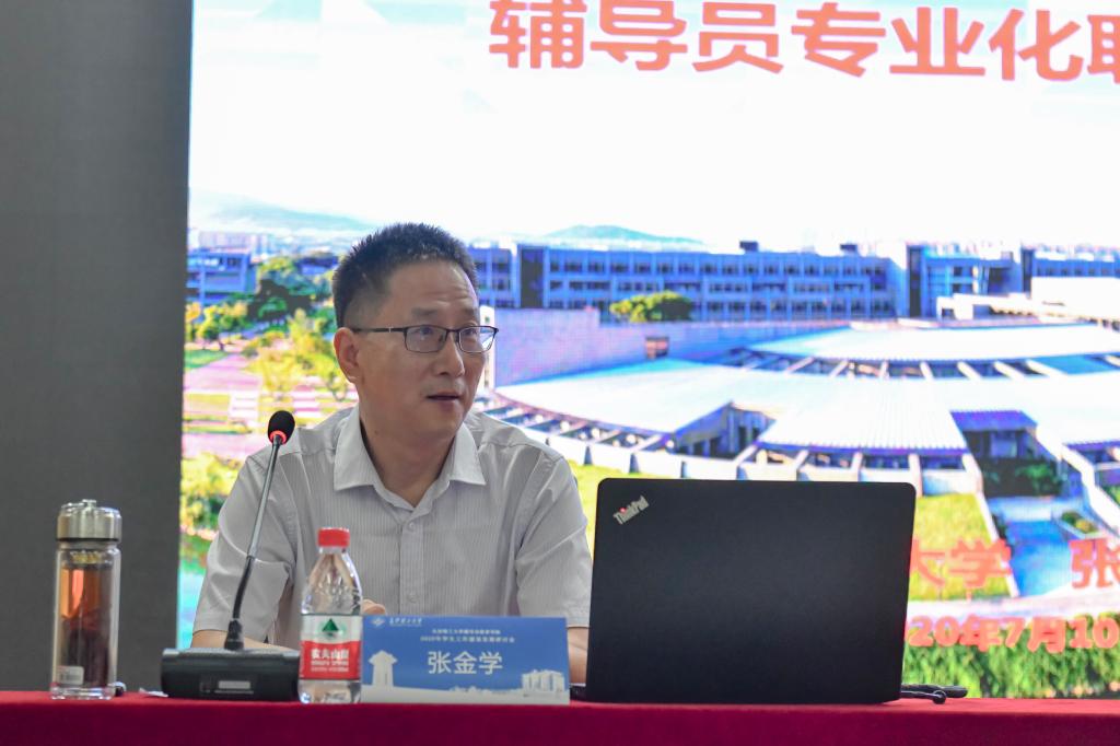 学工部部长艾楚君对“十三五”期间学生工作的主要成效以及面临的形势与机遇做了分析,对“十四五”发展规划“三全育人”的主要指标进行了解读;通过现状分析和横向对比,提出对标“百强”大学建设,实现“十四五”发展规划目标,要坚持四个“一”,即守住一条底线、完善一个体系、明确一个抓手、坚持一个导向。他强调,辅导员应时时处处做到眼里有人、心中有爱、肩上有责、手里有招。