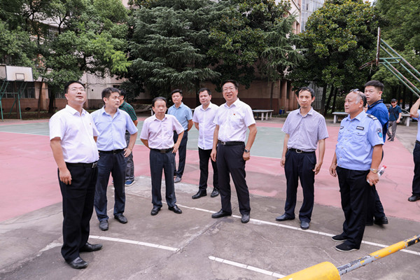 从宿舍到教室,从食堂到运动场,从路面改造到校区绿化、环境设施改造,付宏渊一行逐一进行了检查,对各部门利用暑假保质保量完成了校区改造,宿舍翻修表示肯定。付宏渊表示,今年秋季学期开学,面临众多新情况、新形势,疫情防控要常态化,教育教学工作要全面恢复,工作压力大,各部门要以高度的责任感抓好各项工作,“把学生放在第一位”要落实在每个细节中。