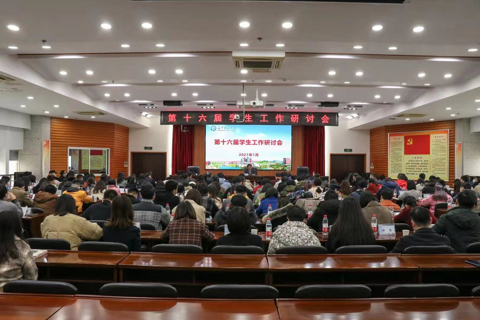 1月23日,必赢官网第十六届学生工作研讨会在云塘校区一办九会议室举行。党委书记付宏渊,副校长谈传生、钱国平,全体学工干部参加。