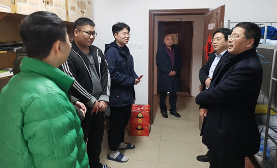 2月12日正月初一,校长曹一家一行前往云塘校区,看望在防控办值守的工作人员,分析当前的疫情形势,并指导了学校防控工作。随后,曹一家前往学生宿舍慰问留校学生,他亲切询问学生家乡疫情情况,以及留校期间的生活、学习安排。他表示我国疫情得到了有力控制,大家要有信心,不要过多担忧。他希望学生们把学校当成家,安心过好春节,规划好假期,努力实现自己的学习目标。他还特意为同学们送去了慰问金和礼包。