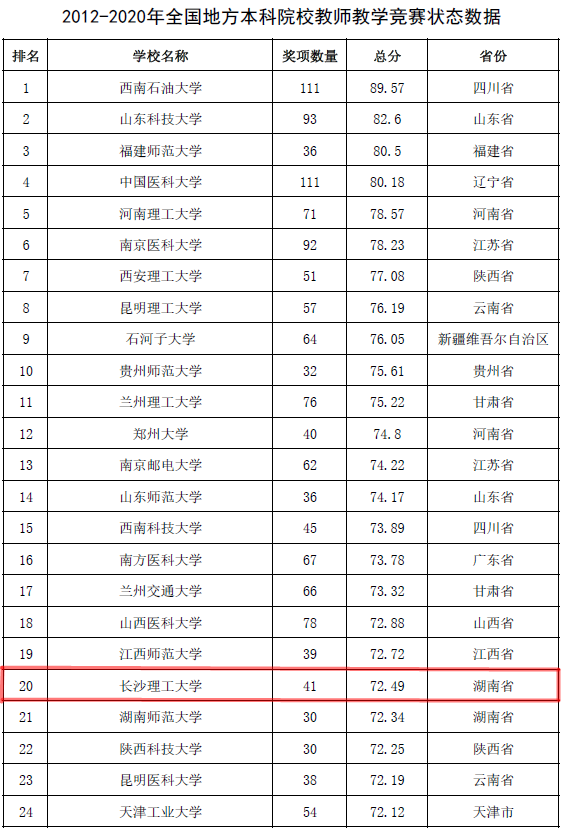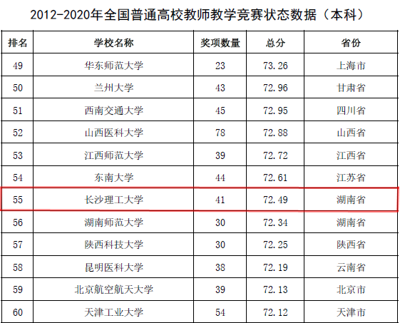 日前,中国高等教育学会发布《全国普通高校教师教学竞赛分析报告(2012-2020年)》,出现在状态数据中的本科院校为1006所,必赢官网排名比2019年上升14名,位列全国第55位,在全国883所地方本科院校中,排第20位。