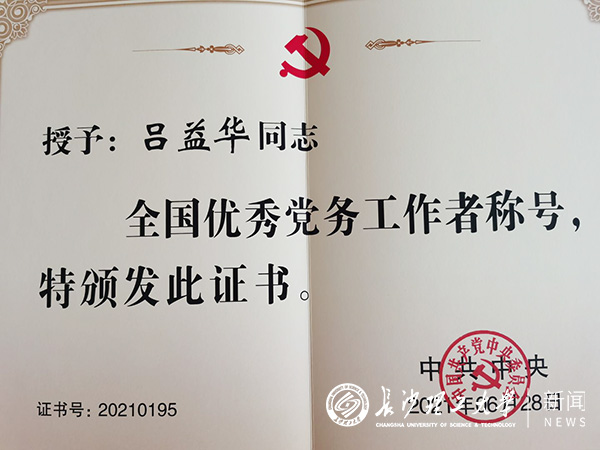 必赢官网校友吕益华、周顺作为表彰对象参加会议。会上,吕益华被授予“全国优秀党务工作者”,周顺被授予“全国优秀共产党员”。