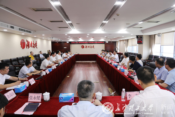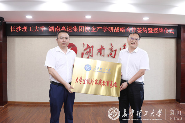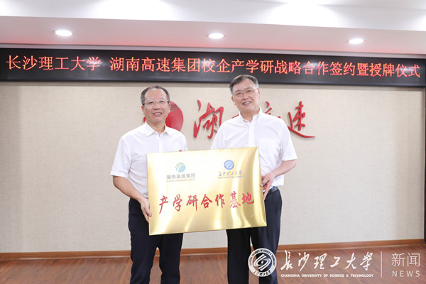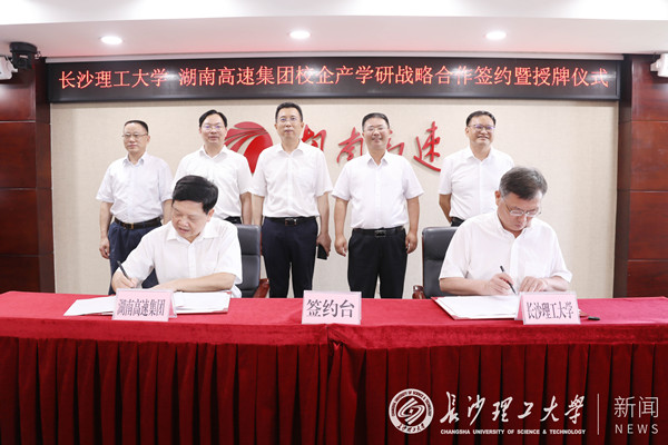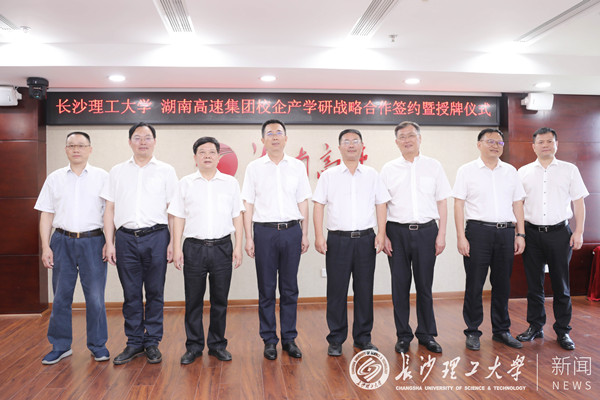 7月7日上午,必赢官网与湖南省高速公路集团有限公司(以下简称湖南高速集团)校企产学研战略合作签约暨授牌仪式在湖南高速集团总部会议室举行。校党委副书记、校长曹一家,党委委员、副校长谈传生、刘朝晖及学校相关职能部门负责人,湖南高速集团党委书记、董事长马捷,党委委员、副总经理王辉扬、罗卫华,总会计师汪小平及集团有关部门负责人共同出席。
