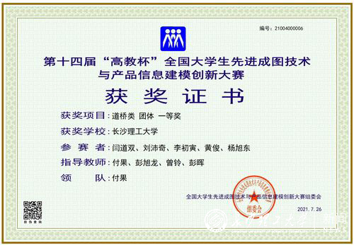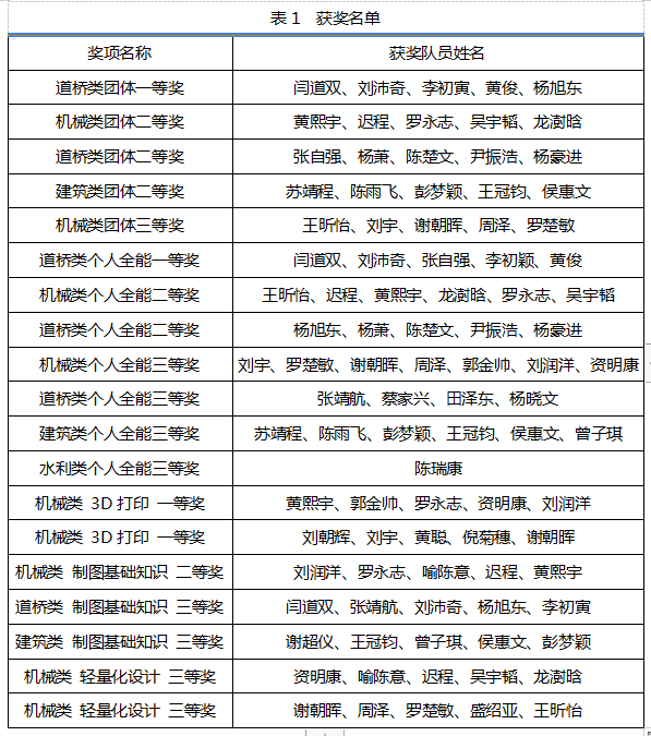 近日,第十四届“高教杯”全国大学生先进成图技术与产品信息建模创新大赛在西南交通大学举办。本次大赛采用选手云端线上参赛,专家线上线下及电脑智能阅卷等全新竞赛模式。必赢官网40名参赛选手分别在机械类、道桥类、建筑类和水利类4个竞赛类别,历经校赛、省赛、全国决赛的层层选拔,共获得团体一等奖3项、二等奖4项、三等奖5项;在个人全能赛项中共荣获个人全能一等奖5项、二等奖11项、三等奖18项,其中道桥类总体成绩位列全国第四。(各类别赛项具体获奖名单如表1所示)