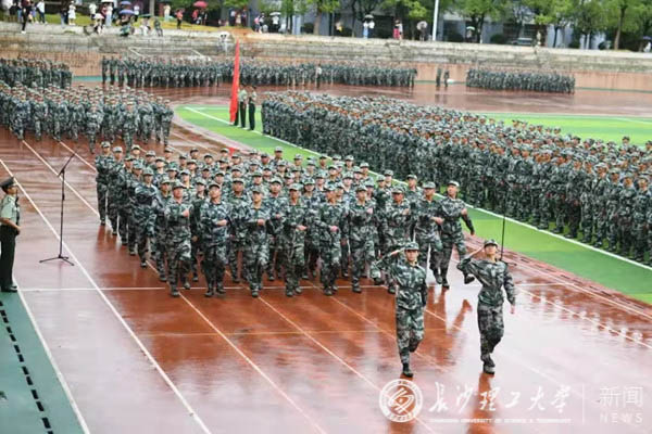 随后,分列式在慷慨激昂的阅兵进行曲中进行。来自18个学院的91个新生方队和教官方队依次通过主席台,他们军姿严整、步伐雄健、士气高昂,展现出新时代大学生朝气蓬勃、意气风发的精神风貌。