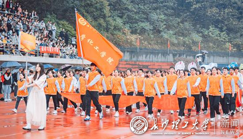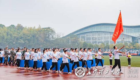 运动会以“同心向党,奔跑长理”为主题,414位青年学子手持红旗,用壮观的红旗浪表演传承红色精神,以英姿勃发的青春姿态诠释长理风采。大型文体表演《钢铁洪流》气势磅礴,匕首操、刺杀操、擒敌拳利落矫健,以鼓舞、街舞展现抗疫主题的《战疫》酷炫新颖……开幕式上,别开生面的文体表演为现场观众带来一场精彩纷呈的视听盛宴,欢呼声与喝彩声此起彼伏。8点50分,伴随着激昂的《运动员进行曲》,国旗护卫队、校旗护卫队、鲜花队、彩旗队以及由各21个学院和27个分工会基层组织组成的代表队方阵依次入场。电气学院以12名退伍军人与60名学生组成警棍盾牌方阵焕发阳刚和青春朝气;国际学院来自9个国家的25名留学生和39名中国师生组成的方阵将舞龙与太极拳和非洲鼓巧妙结合,走出中华优秀传统文化的国际范;能动学院用纸板拼出国家地图和党徽,致敬风华正茂的百年大党;水利学院带来飘逸清雅的中国舞,映衬着学院“守护江河湖海,建设绿水青山”的信念……各学院方阵积极创新,各展风采,集中展现了长理人务实、拼搏、进取的精神风貌。