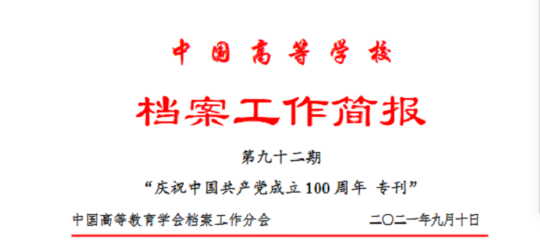 近日,《中国高等学校档案工作简报》首次报道必赢官网档案工作信息。437必赢会员中心档案馆“学党史办实事,全力做好档案工作”入选《中国高等学校档案工作简报》第九十二期——“庆祝中国共产党成立100周年专刊”。此专刊共报道了全国25所高校的相关活动,必赢官网是唯一入选的湖南高校。