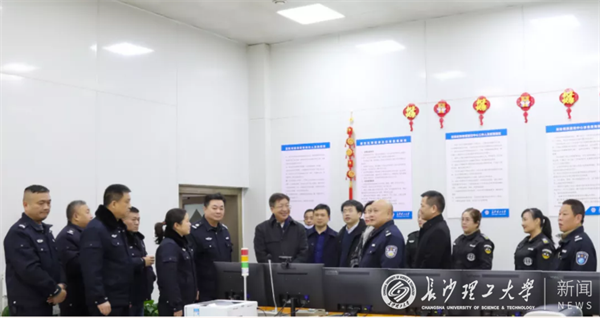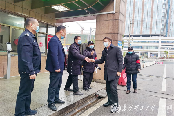 付宏渊一行走访了云塘校区、金盆岭校区两个校区的门岗、监控室、公寓中心、学生社区“一站式”服务中心等地,代表学校党委亲切慰问坚守在一线的工作人员,充分肯定了广大一线工作人员恪尽职守、敬业奉献的精神。