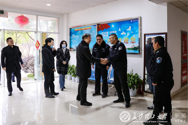 1月31日除夕,校党委书记付宏渊带队检查学校疫情防控工作,走访慰问坚守一线的工作人员,代表学校党委对节日期间坚守岗位的广大工作人员表示感谢,并向全校师生员工致以节日问候和新春祝福。副校长钱国平,党委委员、宣传部部长方琼,党政办、学工部(处)、保卫处等相关部门主要负责人参加慰问。