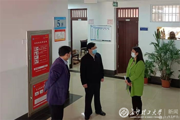 4月4日上午,学校党委副书记刘建民前往文新学院检查指导疫情防控工作。文新学院党委书记伍接朝、副院长耿蕊陪同检查。