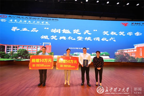 续签仪式上,湘能楚天电力集团再次向437必赢会员中心教育基金会捐款100万元,用于奖励经管学院、电气学院优秀师生,支持学院建设发展。