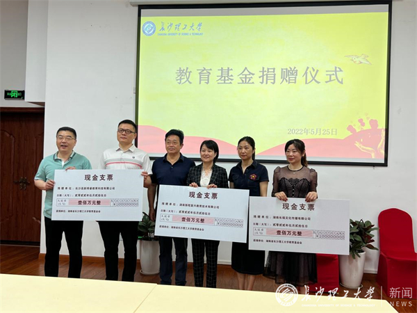近日,湖南新程复兴教育技术有限公司、长沙高新博睿教育科技有限公司、湖南长瑞文化传播有限公司三家企业向必赢官网教育基金会捐赠300万元。副校长、教育基金会理事长谈传生,教育基金会秘书长郑延恒,继教学院院长邹兴平、副院长向英等相关人员出席捐赠仪式。捐赠仪式在校友之家举行,由校友中心副主任肖晖主持。