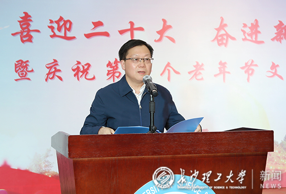校党委副书记刘建民致词。他指出,离退休老同志以文艺汇演的方式歌颂党的丰功伟绩,喜迎党的二十大胜利召开,充分展现了老同志昂扬向上的精神风貌和关心学校发展的深厚感情。他向老同志们通报了学校过去一年各项事业取得的显著成效,详细介绍了在学校党委的领导下高标准建成了“三全育人”教育基地。他感谢老同志们长期以来对学校的关心与付出,强调老同志是学校最宝贵的财富,希望老同志继续为学校发展贡献余热,助力学校早日实现“长理梦”。