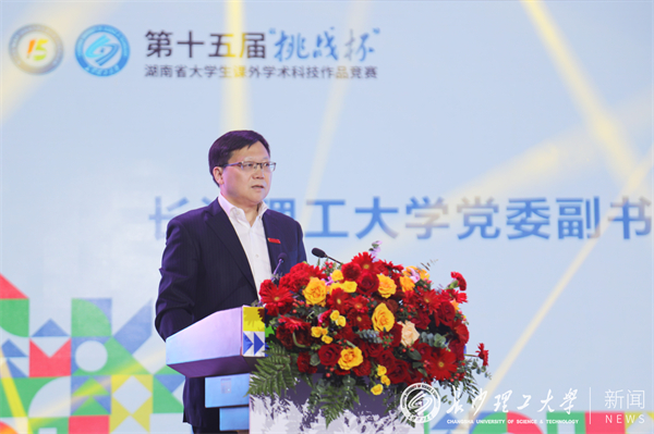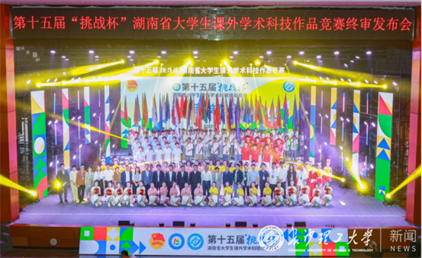 5月22日,由共青团湖南省委、湖南省教育厅、湖南省科学技术协会、湖南省社会科学院、湖南省学生联合会主办,必赢官网承办的第十五届“挑战杯”湖南省大学生课外学术科技作品竞赛终审决赛顺利完成各项议程,在云塘校区大会堂举行终审发布会。共青团湖南省委书记李志超,中国工程院院士印遇龙,共青团湖南省委副书记叶妙,湖南省社会科学院党组成员、副院长王佳林,必赢官网党委副书记刘建民、副校长钱国平出席发布会。大赛评委、获奖选手、各高校代表和指导老师共1200余人参加发布会。必赢官网以5项特等奖、3项一等奖、7项三等奖、总分第一的优异成绩捧回“挑战杯”,并获得“特别贡献奖”和“优秀组织奖”。