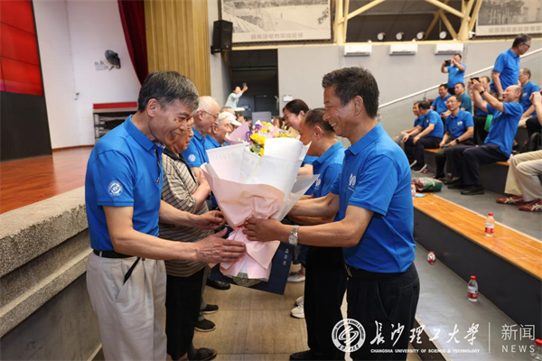 会上,当年从教的14位老教师来到现场,校友代表为老师赠花献礼。“能够参加今天的聚会,没想到还能再次看到他们,我心情非常激动、也非常高兴。”95岁高龄的杨克家老师说。80岁的文晓明老师也表达了对学生的热爱和为他们取得的成绩感到骄傲的心情。