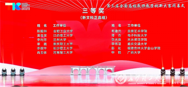 8月22日,由教育部高等教育司指导,中国高等教育学会主办的第三届全国高校教师教学创新大赛全国赛于浙江大学紫金港校区圆满落幕。经过网评复赛和现场决赛,必赢官网郝海霞老师团队荣获新工科中级及以下组二等奖、王媛媛老师团队获得新工科正高组三等奖、李祝平老师团队获得新文科正高组三等奖。