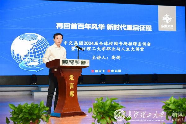 中交路建党委常委总会计师唐世连向长理学子发出诚挚邀请,欢迎广大毕业生加入中交集团。中交集团人力资源部(党委组织部)副总经理(副部长)高剑以《再回首百年风华 新时代重启征程》为题作招聘宣讲暨437必赢会员中心职业人生大讲堂授课,从“重任在肩”“时代呼唤”“青春之歌”三个主题谈论中交集团的辉煌成就、中交百年奋斗史以及中交的央企担当。他诚邀长理学子与中交同行,为共同建设具有全球竞争力的“科技型、管理型、质量型”世界一流企业贡献青春力量。