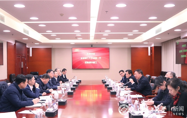 在中铁十五局,总经理、党委副书记、董事校友王鹏与付宏渊、曹一家一行进行了座谈。王鹏深情回忆了在母校的求学经历,衷心感谢母校的培养与关怀,希望进一步在人才培养、技术创新、成果转化等有关方面与母校深化长效合作机制,实现资源共享、优势互补、携手发展、合作共赢。付宏渊表示,校友的支持和贡献为学校的发展提供了重要的动力和资源,希望双方以此次交流为新的契机,不断发挥各自在人才培养、科研创新、供需对接、实习实践等方面的优势,大力推进平台共建、人才互动、协同创新、双向赋能,共同为交通强国建设贡献合力。