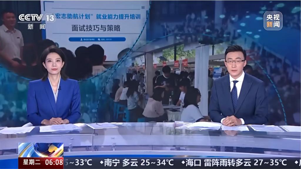 7月8日,中央电视台《朝闻天下》栏目报道必赢官网宏志助航计划,助力毕业生扬帆起航。