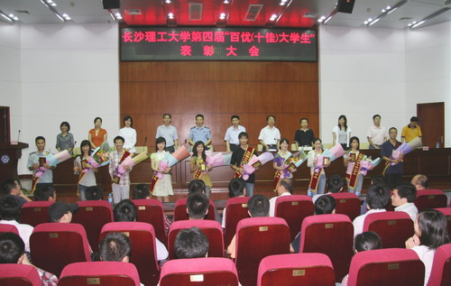 会上,王书记等领导为本届“百优(十佳)大学生”颁奖,学生代表向“十佳大学生”献花祝贺。会后,王耀中书记、黎正稳副校长等领导与“十佳大学生”亲切合影留念。
