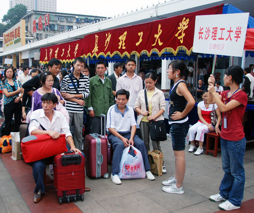 长沙理工文法学院的李同学告诉记者,他们积极响应学校学院号召,配合迎新工作。从早上7点就开始了迎接新生的接待工作。迎新人员们纷纷表示:尽管牺牲了自己学习和休息的时间,但他们愿意把爱奉献给自己的学校和同学们,愿意把这种优良的传统继承下去。