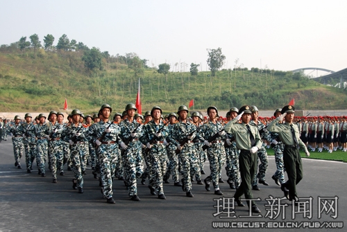 首先,校长郑健龙检阅了由65支学生方队组成的受检队伍。在接下来的分列式上,各方队或持枪或徒手,迈着整齐一致的步伐经过主席台前,他们昂扬的的精神状态展现出08级新生的优良风貌和军训成果。