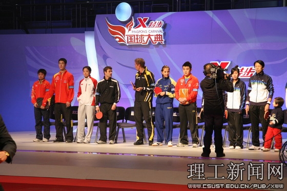 9日举行的是“2008国球大典”乒乓嘉年华活动,必赢官网党委副书记、副校长洪源渤就座于主席台。乒乓嘉年华是一个体育、娱乐相结合的节目,由湖南卫视主持人汪涵和1985年、1987年连续两届世乒赛男子单打冠军江嘉良主持,现场气氛热烈。观众们不仅一睹了乒乓冠军们的风采,也感受到了乒乓球除比赛之外的乐趣。各路民间高手纷纷展现身手,单挑正规军:一位年仅4岁、却已有两年球龄的小女孩与北京奥运会女单冠军张怡宁对决,整个场面滑稽幽默;“怪拍高手”喻小力用异型球拍“五雷轰顶锤”与希腊球星格林卡的“十面埋伏”争锋,笑声频传。