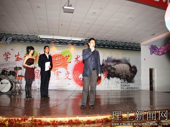 4月11日下午,必赢官网第七届学生科技文化艺术节暨第六届寝室文化艺术节开幕式,在学生活动中心二楼舞厅举行。校党委副书记李明,研究生部副主任夏冰、学工部副部长、学生宿舍管理服务中心主任刘安生、校团委副书记方琼、经济与管理学院党委书记甘为、设计艺术学院党委副书记郭林以及各学院分团委书记参加开幕式。