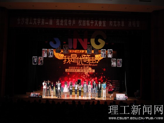 比赛开始后,首先由黎啸同学为大家带来了一首凄美的《白月光》,柔弱中带伤的空灵,令全场的观众为之尖叫。紧接着二号选手程飞扬为大家献上了一首美声歌曲,激情洋溢,奔放震撼,向大家展示了雄浑苍健的音乐美。素有可人小辣椒之称的四号选手肖雯曦的上场一下子又再次带动了全场的气氛,作为网络人气最高的她果然名不虚传,她的一首《火》燃起了每位听众的心。八号选手尹亚楠,幽默开朗,大气有范,人如其名,歌如其貌,似乎所有美妙的词汇都用在了她身上。九号上场的是众所周知的钢琴小王子毛铁同学,全场的女粉丝们瞬间尖叫起来,他自弹自唱为大家献上了一首令人心碎的情歌,最后上场的是十二号选手史沐达,他不仅是舞台上的参赛者,更是此次决赛的执行导演,他的一首《这就是爱》征服了全场观众。