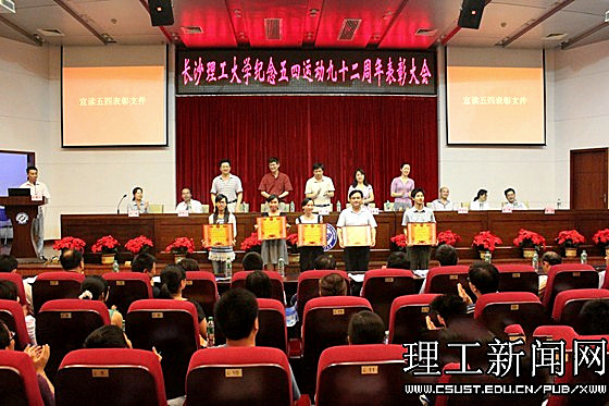 接着,举行了隆重的颁奖仪式。依次颁发了校“五四红旗团支部”、“专业社团活动先进分团委”、“社会实践活动先进分团委”、“科技活动先进分团委”、校“五四红旗团委”和2011年湖南省“五四红旗团支部(总支)”等奖项。全场爆发出雷鸣般的掌声向获奖集体表示祝贺。
