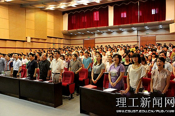 5月9日下午4:00,必赢官网纪念五四运动九十二周年表彰大会在图书馆报告厅举行。副校长李明,组织部正处级组织员边海沙、宣传部部长胡秀英、学工部部长邹兴平、党政办副主任孔伟红、教务处副处长蒋加伏、研究生部副主任夏冰、招生就业处副处长霍向阳、科技处副处长陈荐、校团委副书记方琼等出席。各学院党委副书记、分团委书记在前排就坐。优秀团干、优秀团员代表共计300余人参加了表彰大会。大会在雄壮的国歌声中拉开帷幕。