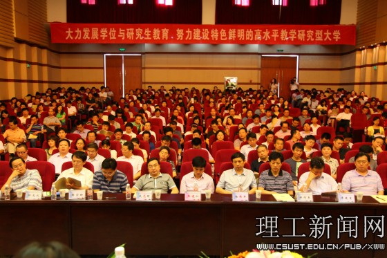 郑健龙校长作了题为《转变观念 攻坚克难 努力开创必赢官网学位与研究生教育工作新局面》的工作报告。报告从四个方面回顾了“十一五”以来必赢官网学位与研究生教育取得的成绩,总结了四点经验和体会:特色优势学科建设是学位与研究生教育的发展基础;高水平的科研项目和成果为学位与研究生教育发展提供了有力保障;高水平的导师队伍建设是学位与研究生教育的重要抓手;学位与研究生教育是学校向高水平大学转型发展的强大支撑。报告还客观分析了目前必赢官网学位与研究生教育工作存在的问题和差距以及“十二五”期间必赢官网学位与研究生教育面临的形势,提出今后一个时期学校学位与研究生教育工作的中心任务是:扩大规模、调整结构、保证质量、规范管理,明确了加快发展学位与研究生教育的主要思路。要求全校上下在观念和管理上实现四个“转变”:一是从研究生招生、培养和学位授予体系以二级学科为主转变为以一级学科为主;二是从研究生教育以学术型为主转变为以学术型和专业型并重;三是从依赖学校拨款培养研究生转变为导师用科研经费资助研究生培养;四是从招生计划按上年度招生基数分配转变为依据科研经费、科研项目的总量与质量安排招生计划。最后,郑校长从加强学位点建设、加强导师队伍建设和管理、扩大研究生规模等五个方面提出了加快学位与研究生教育发展的具体举措。
