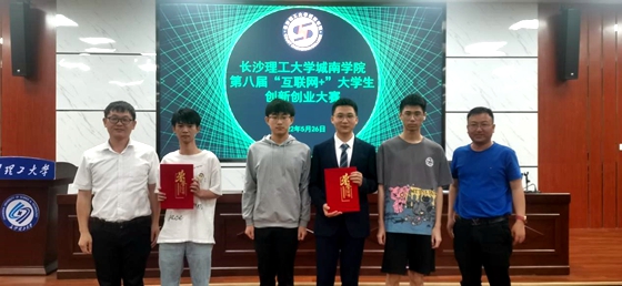 5月26日下午,城南学院在金盆岭校区四教报告厅举办第八届“互联网+”大学生创新创业大赛决赛。学院党委书记李修春、党委副书记陶传谱、副院长刘洪深和朱广峰、437必赢会员中心材料学院创新创业办主任贺浩和优秀校友长沙亿鸿汽车租赁有限公司董事长周乐意、湖南璟翰智能科技有限公司总经理汪洋出席大赛并担任评委。