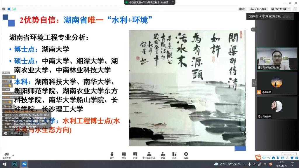 为深入推进家校协同育人,凝聚育人合力,8月25日晚,水利与环境工程学院召开2022级本科新生线上家长会,院党委书记喻玲娜、院长陈杰、党委副书记银波、2022级辅导员刘灿、陈鑫林出席会议,来自全国各地的600余名新生家长参加,会议由银波主持。