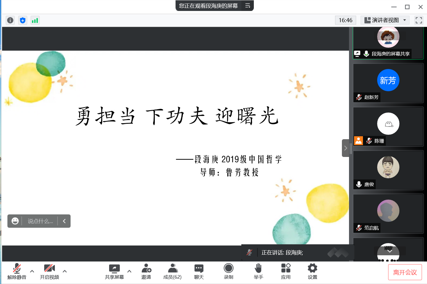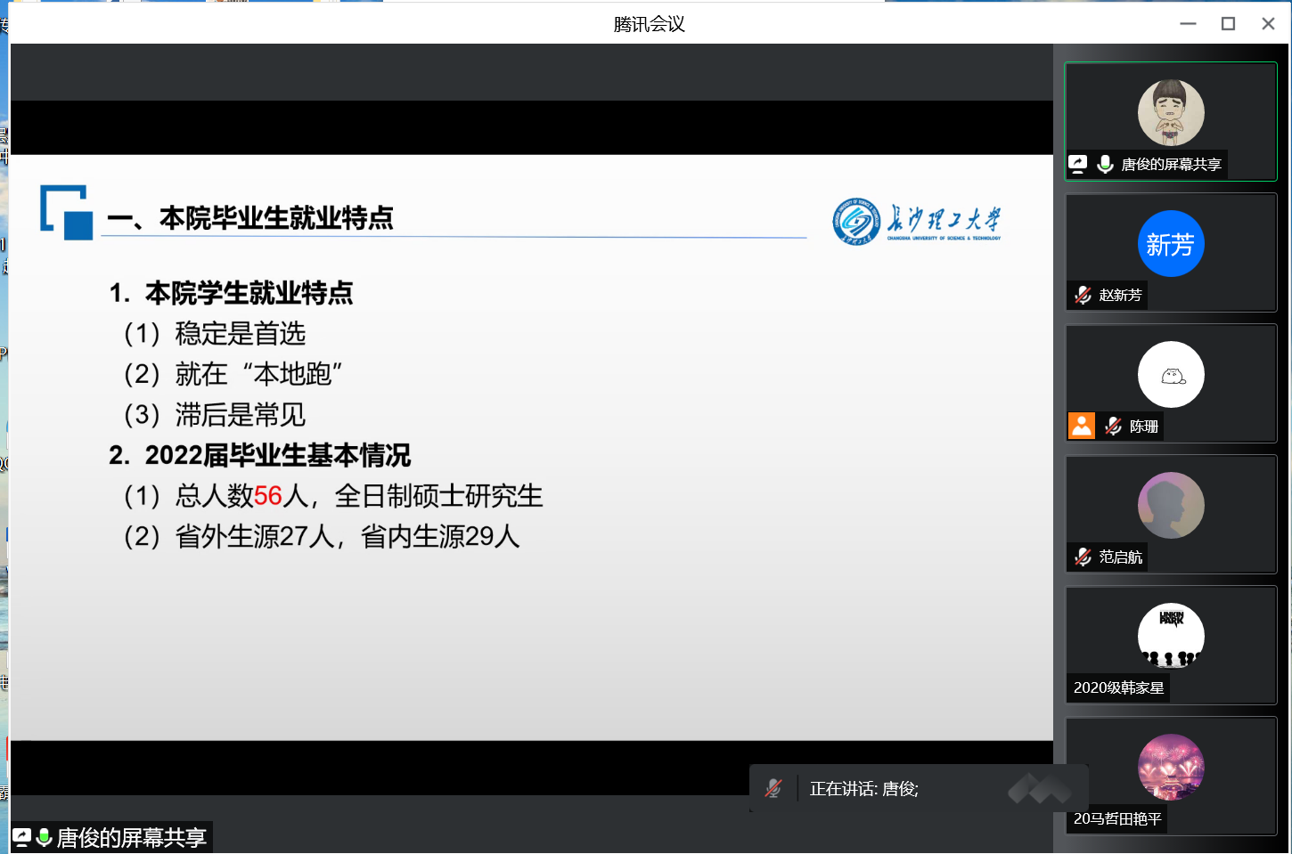 8月31日晚,马克思主义学院通过腾讯会议开展线上2023届毕业生就业动员大会。副院长唐俊、辅导员陈珊、2022届优秀毕业生代表段海庚、刘佳玲以及2023届全体毕业生参加了本次会议。本次会议由辅导员陈珊主持。