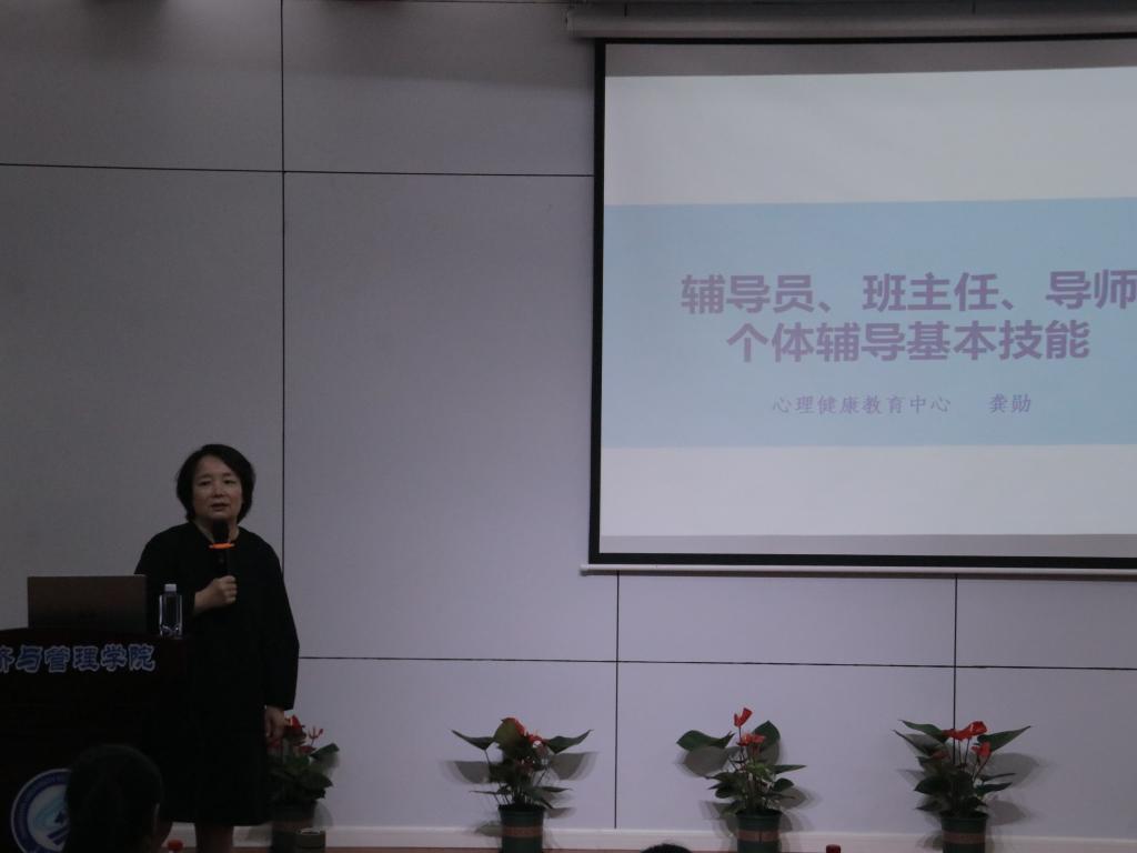 唐青从消防安全、住宿安全、疫情防控、交通安全、财产安全、网络安全等方面梳理了可能存在的安全隐患,号召老师们加强对学生的安全教育,营造安全的校园环境。龚勋围绕“辅导员、班主任、导师个体辅导基本技能”,贯穿一个个生动的案例,向老师们讲解了个体辅导的辅导取向、辅导态度,分享了个体辅导的倾听、共情、非暴力沟通等技能,让老师们能够更好地理解学生、走进学生、帮助学生。丁丹分析了目前的疫情情况和学校的实际情况,希望老师们一起共同维护学校的安全稳定。