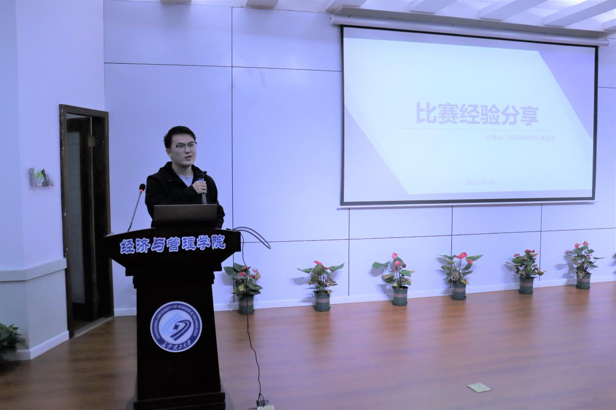 10月9日晚,经济与管理学院在金盆岭校区12教200会议室举办了本科2021级商赛主题沙龙。本期活动旨在进一步提高我院学生对商赛、学科竞赛的了解程度,提升学生参赛兴趣。出席本次活动的嘉宾有学院创新创业教育办公室副主任朱晋,优秀学长代表CFA2001李品谚、智财2002朱远达。本科2021级及2022级学生代表参与本次活动。活动由辅导员杨舒文老师主持。